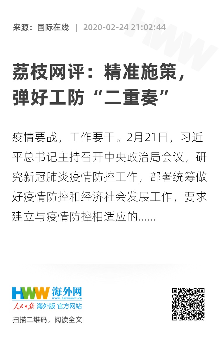目前,疫情蔓延势头得到初步遏制,防控工作取得阶段性成效,但全国疫情发展拐点尚未到来,只有准确分析判断疫情形势,精准制定施行防控措施,把疫情防控的重音奏响,把统筹发展的长调弹好,形成一首和谐的 “二重奏”,才能取得疫情防控和复工复产的双胜利。