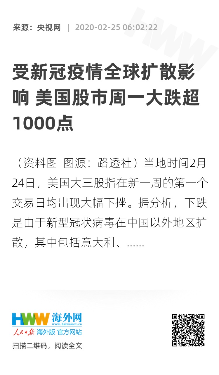 据分析,下跌是由于新型冠状病毒在中国以外地区扩散,其中包括意大利、韩国及日本在上一周末确诊感染人数大幅上涨,导致市场忧心新冠疫情会对全球经济造成更长远冲击所引起。