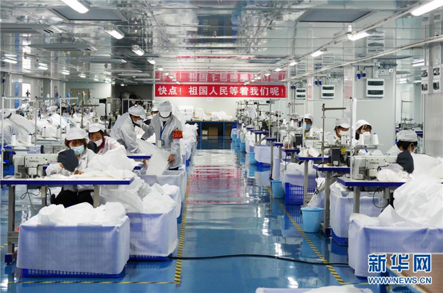 这是深中海医疗用品有限公司生产车间(2月23日摄)。 新华社记者 王丰 摄