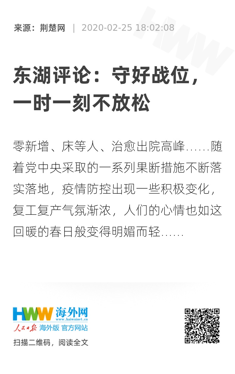 疫情虽“回暖”,但需谨防“倒春寒”。各级党委和政府、各地群众绝不能盲目乐观,仍须咬紧牙关,一鼓作气,坚定信念、保持韧劲、常怀耐心,在时刻战斗中迎接战疫胜利之日的到来。