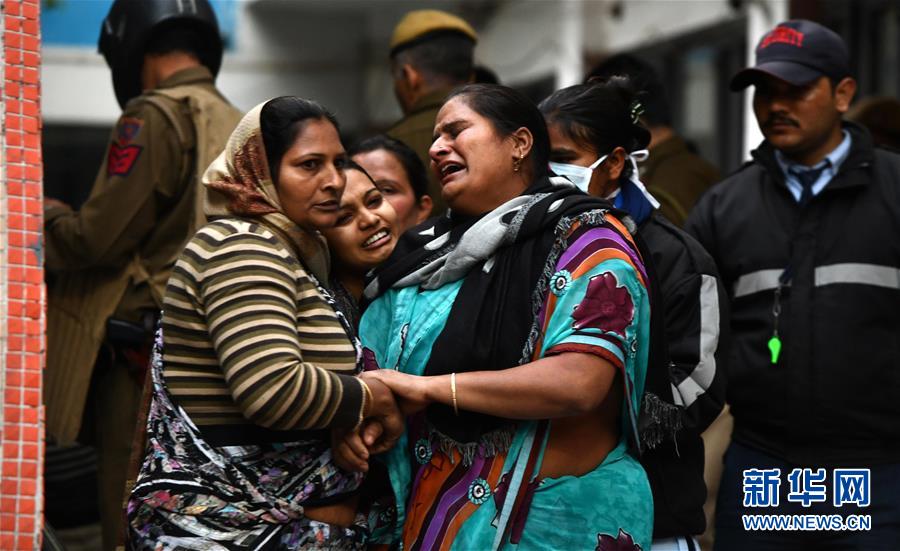 2月25日,在印度首都新德里,受害者家属在医院哭泣。 印度《公民身份法》修正案支持者和反对者近两日在德里东北部多地发生冲突并引发骚乱,截至25日已造成13人死亡、150多人受伤。 新华社发