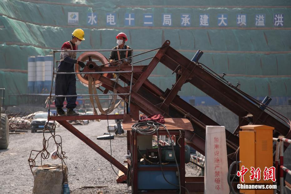 2月25日,工人在调节设备。近日,坝址位于贵州省毕节市纳雍县的夹岩水利枢纽工程项目在做好疫情防控的同时有序复工,截至目前,项目复工工作面77个,占总工作面的32.6%。据悉,该工程是贵州省目前在建规模最大水利枢纽工程,大坝高154米、长429米,水库正常蓄水位高程1323米,总库容13.23亿立方米。中新社记者 瞿宏伦 摄