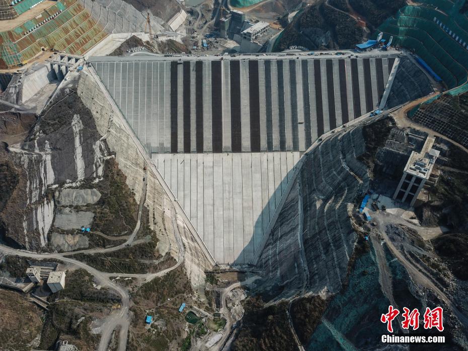2月25日,航拍正在建设中的夹岩水利枢纽工程项目。近日,坝址位于贵州省毕节市纳雍县的夹岩水利枢纽工程项目在做好疫情防控的同时有序复工,截至目前,项目复工工作面77个,占总工作面的32.6%。据悉,该工程是贵州省目前在建规模最大水利枢纽工程,大坝高154米、长429米,水库正常蓄水位高程1323米,总库容13.23亿立方米。 中新社记者 瞿宏伦 摄