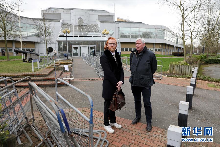 2月26日,在英国伦敦,“维基揭秘”网站主编克里斯廷·赫拉凡松(右)等候在一家地方法院外。新华社发(蒂姆·爱尔兰摄)