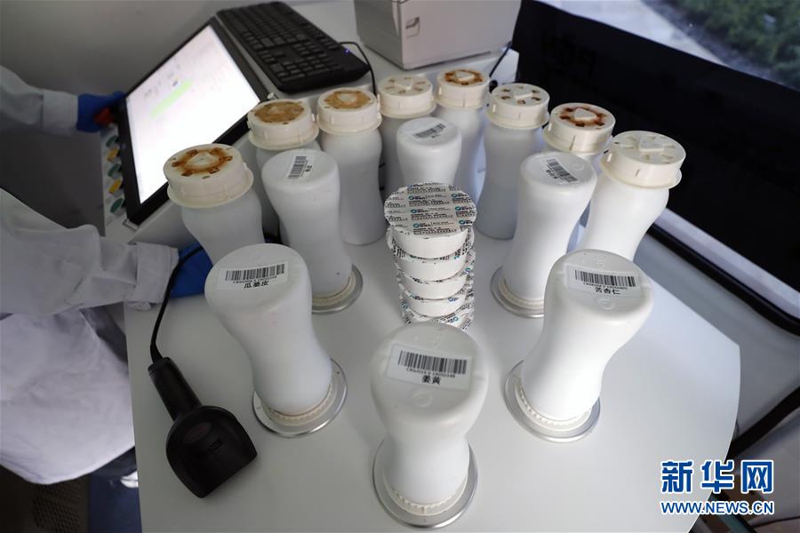 2月26日,在江夏方舱医院的“流动应急智能中药房”里,工作人员在操作发药机。新华社记者 沈伯韩 摄