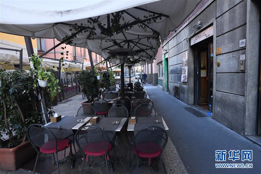 这是2月26日在意大利米兰拍摄的路旁的空桌椅。 针对新冠病毒疫情发展形势,意大利米兰采取多项封闭措施,减少人员流动。 新华社发(马斯科洛摄)
