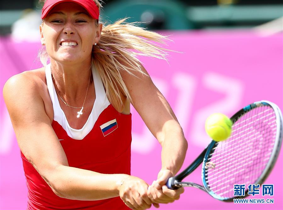 图为2012年8月4日,莎拉波娃在伦敦奥运会网球女单决赛中回球。最终,她以0比2不敌美国选手小威廉姆斯,获得亚军。 新华社记者陈建力摄