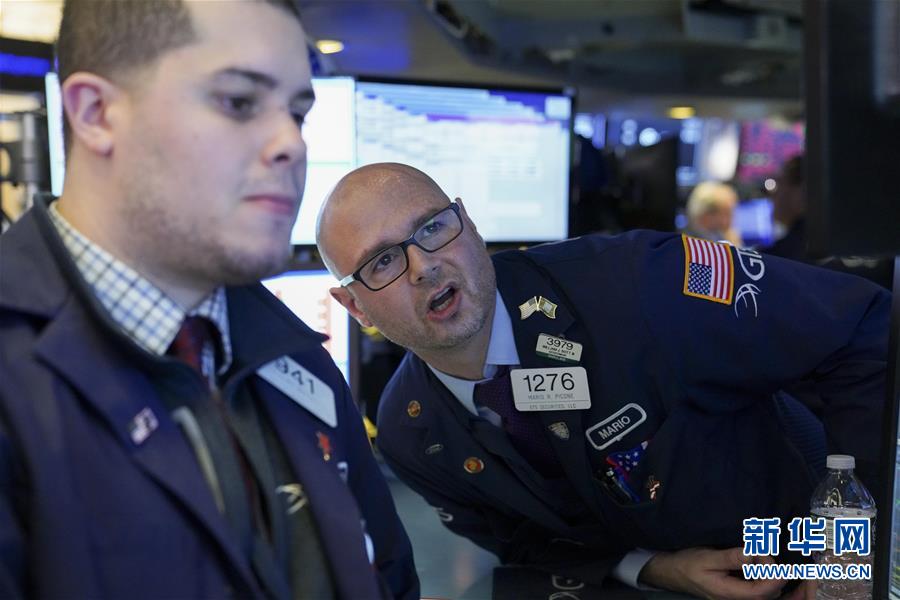 2月27日,交易员在美国纽约证券交易所工作。 纽约股市三大股指27日再度暴跌。截至当天收盘,道琼斯工业平均指数下跌1190.95点,收于25766.64点,跌幅为4.42%。标准普尔500种股票指数下跌137.63点,收于2978.76点,跌幅为4.42%。纳斯达克综合指数下跌414.29点,收于8566.48点,跌幅为4.61%。 新华社记者 王迎 摄