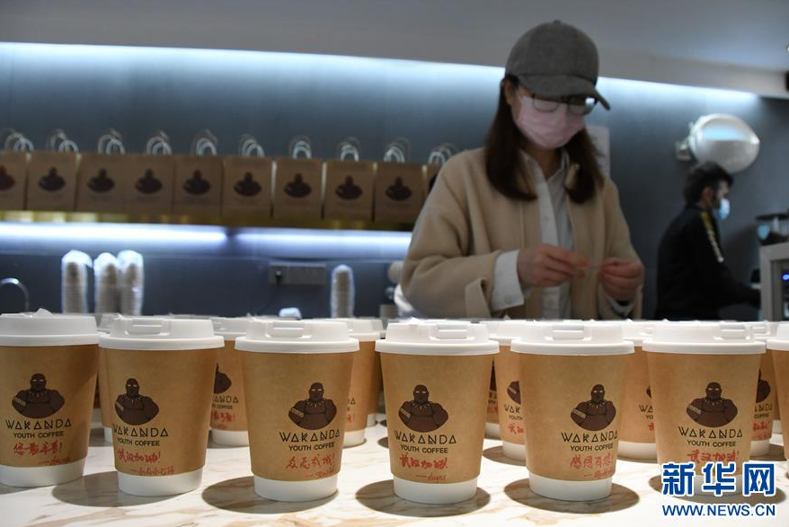 在武汉Wakanda轻饮咖啡店,工作人员在打包咖啡(2月14日摄)。新华社记者 乐文婉 摄