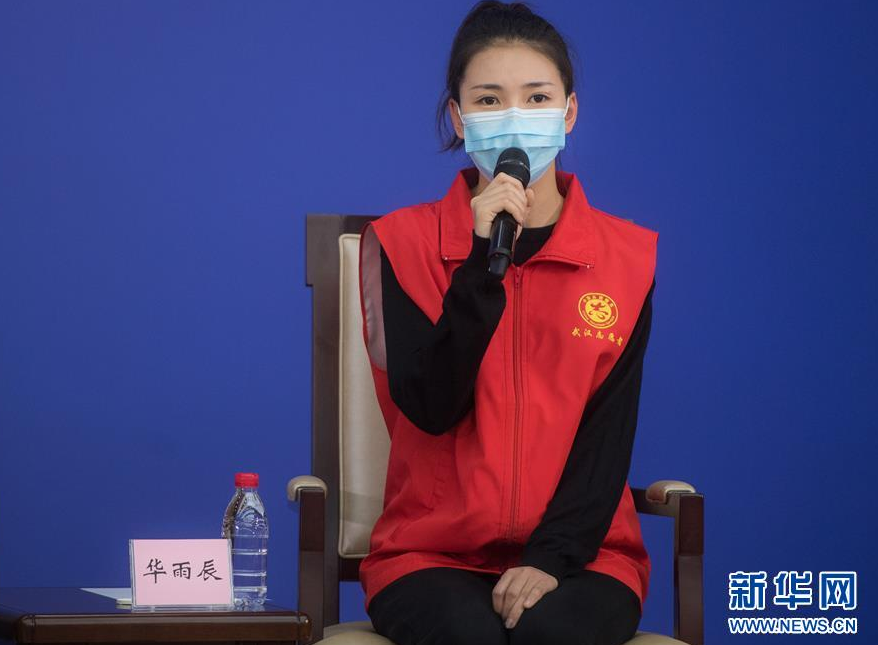国务院新闻办公室在湖北武汉举行国务院新闻办记者见面会,邀请在武汉疫情防控一线的普通工作者讲述他们团结奋战的故事,并回答记者提问。这是武汉市青山区钢花小学音乐教师华雨辰在记者会上(2月23日摄)。新华社记者肖艺九摄