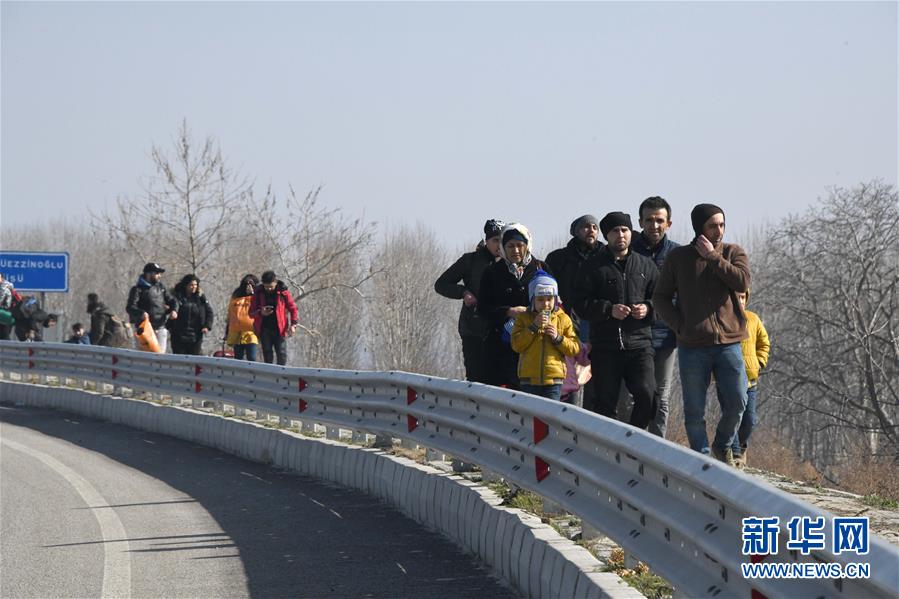 土耳其总统埃尔多安2月29日说,土耳其已经不再阻止难民从土耳其进入欧洲。欧盟委员会主席冯德莱恩同日表示,欧盟注意到从土耳其涌向希腊、保加利亚等欧盟国家的难民潮激增,随时准备出动欧洲边境管理局人员阻止难民潮。图为3月1日,在土耳其埃迪尔内省,难民和非法移民步行前往土耳其与希腊边境。新华社记者 徐速绘 摄