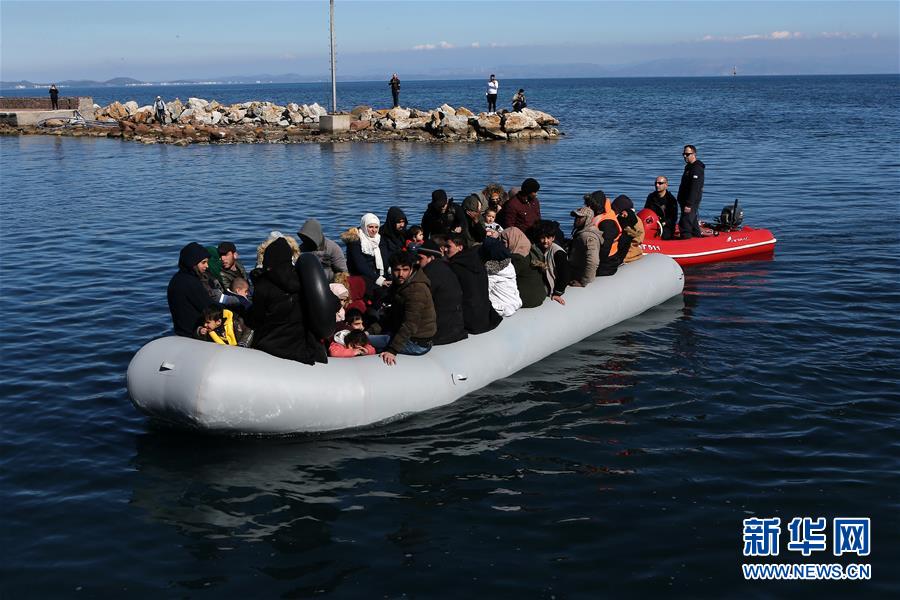 3月1日,在希腊莱斯沃斯岛,一艘从土耳其方向驶来、载有难民和移民的船只靠近当地港口塞尔米。 希腊政府3月1日晚决定,将边防防御等级提升至最高级,以应对大量难民和非法移民从土耳其涌入希腊的状况。 新华社发(马里奥斯·罗洛斯摄)