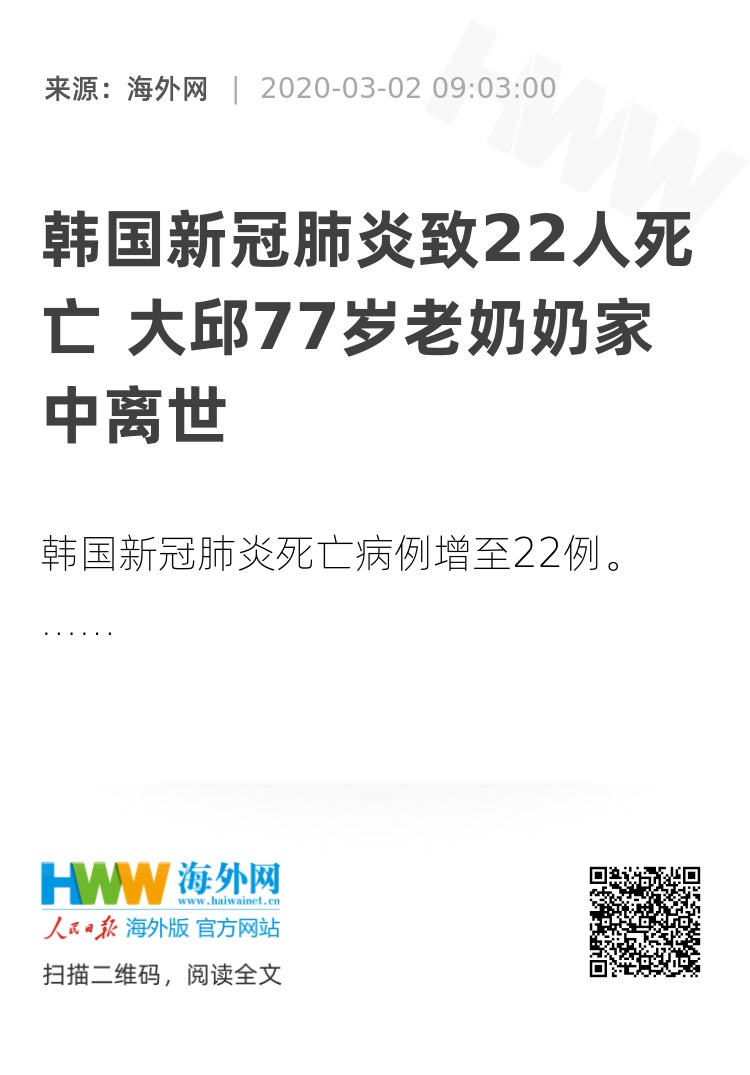 报道称,这是韩国第4位等床位期间离世的确诊患者,也是韩国第22起新冠肺炎死亡病例。