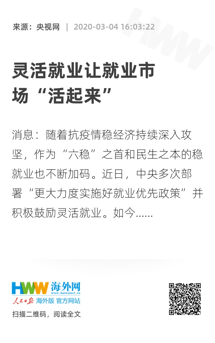 央视网消息:随着抗疫情稳经济持续深入攻坚,作为“六稳”之首和民生之本的稳就业也不断加码。