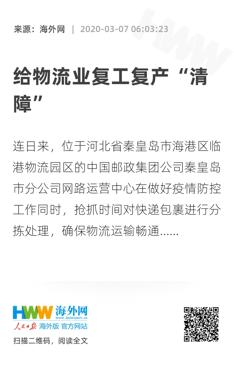 连日来,位于河北省秦皇岛市海港区临港物流园区的中国邮政集团公司秦皇岛市分公司网路运营中心在做好疫情防控工作同时,抢抓时间对快递包裹进行分拣处理,确保物流运输畅通。 曹建雄摄(人民视觉)