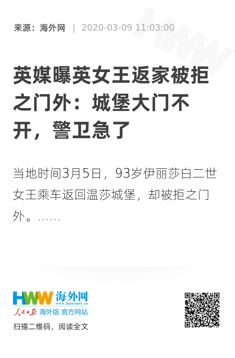 海外网3月9日电 由于温莎城堡大门紧闭,英女王伊丽莎白二世日前回家时竟然被拒之门外,这一罕见情况更是急坏了女王的警卫人员。