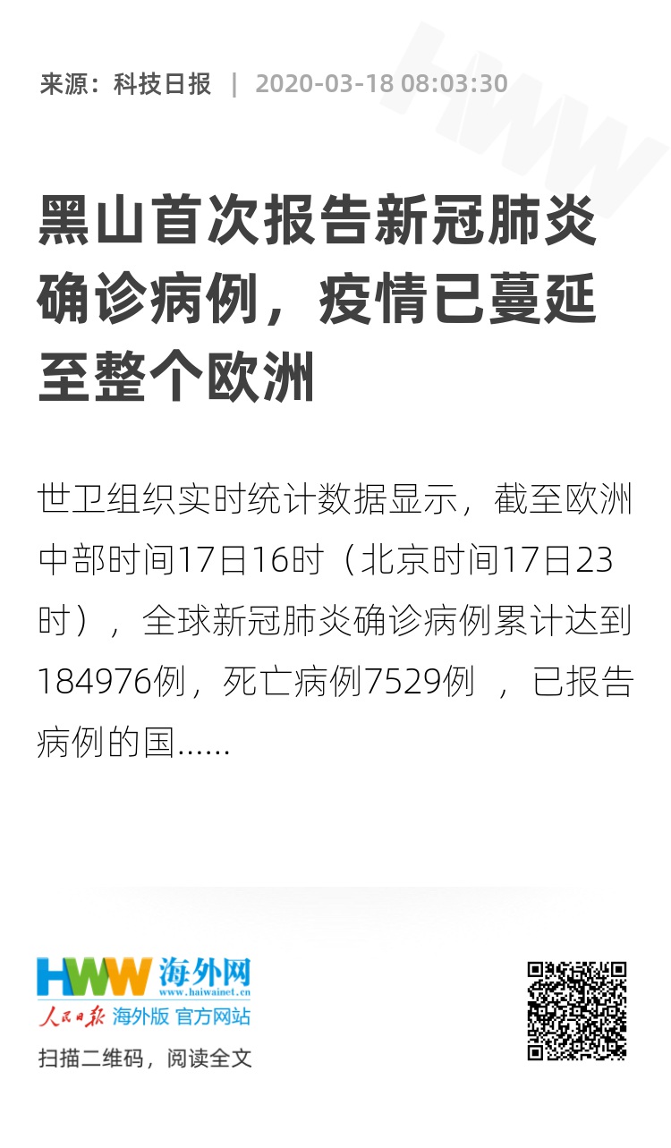 目前疫情已经蔓延至整个欧洲,已有意大利、伊朗、西班牙确诊病例数破万,欧洲多国确诊人数超过1000人,纷纷升级防控举措。