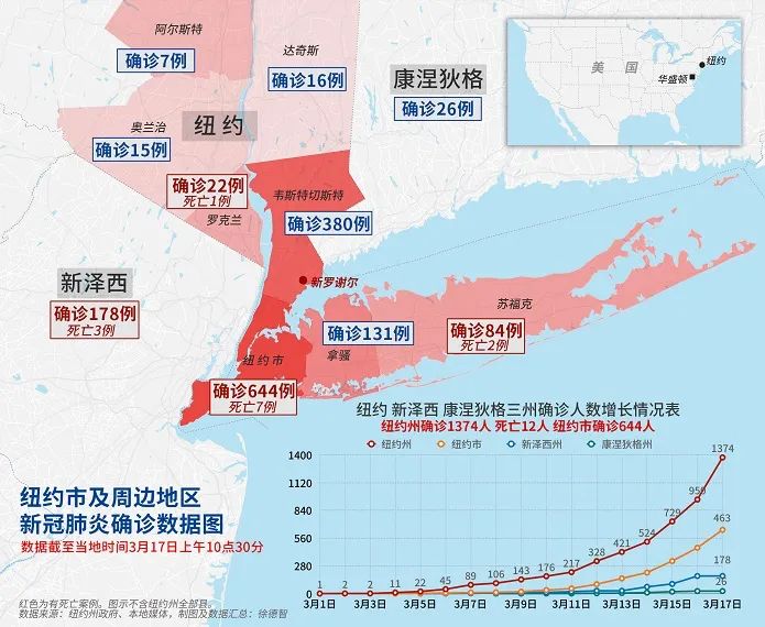据CNN报道,美国西弗吉尼亚州17日宣布发现一例新冠确诊病例,这意味着新冠疫情已经遍布美国50个州。据约翰·霍普金斯大学的数据,截至美东时间17日17:33,美国确诊病例为5894例,死亡97例。17日,美国纽约州州长科莫召开发布会,宣布纽约州新冠肺炎确诊人数达到1374人,成为全美第一个突破1000名确诊病例的州。