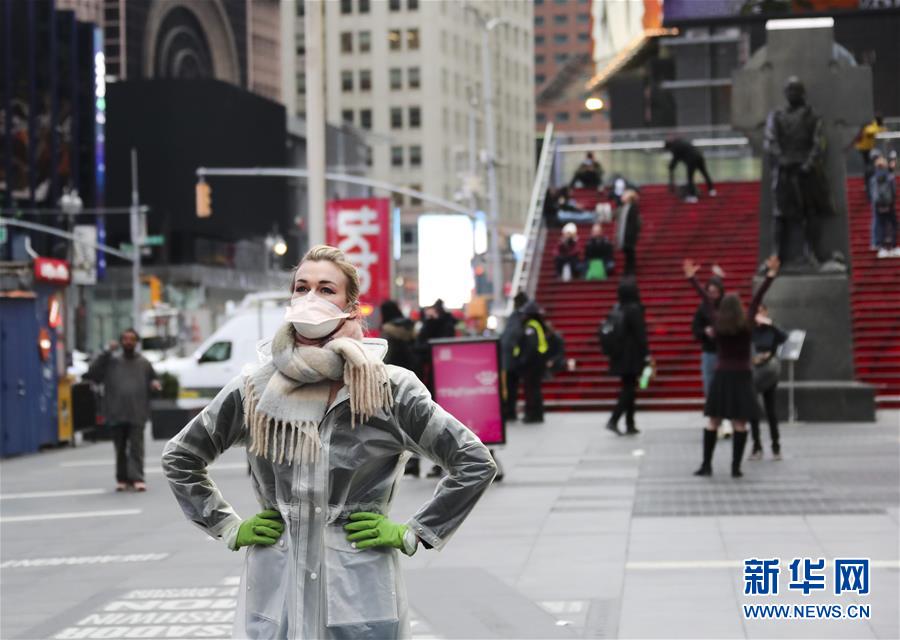 3月19日,一名戴口罩的女子在美国纽约曼哈顿时报广场拍照。 美国约翰斯·霍普金斯大学发布的实时统计数据显示,截至美国东部时间19日17时30分(北京时间20日5时30分),美国新冠肺炎确诊病例累计13060例,死亡175例。受新冠肺炎疫情影响,纽约等疫情严重的地区执行多项减少人口聚集的措施,昔日的闹市如今已冷冷清清。 新华社记者 王迎 摄
