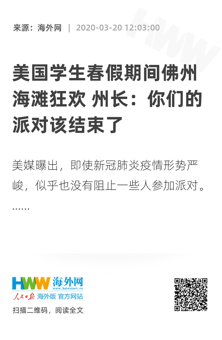 【海外网3月20日|战疫全时区】目前正值美国学校春假期间,美媒曝出,即使新冠肺炎疫情形势严峻,似乎也没有阻止一些人参加派对。