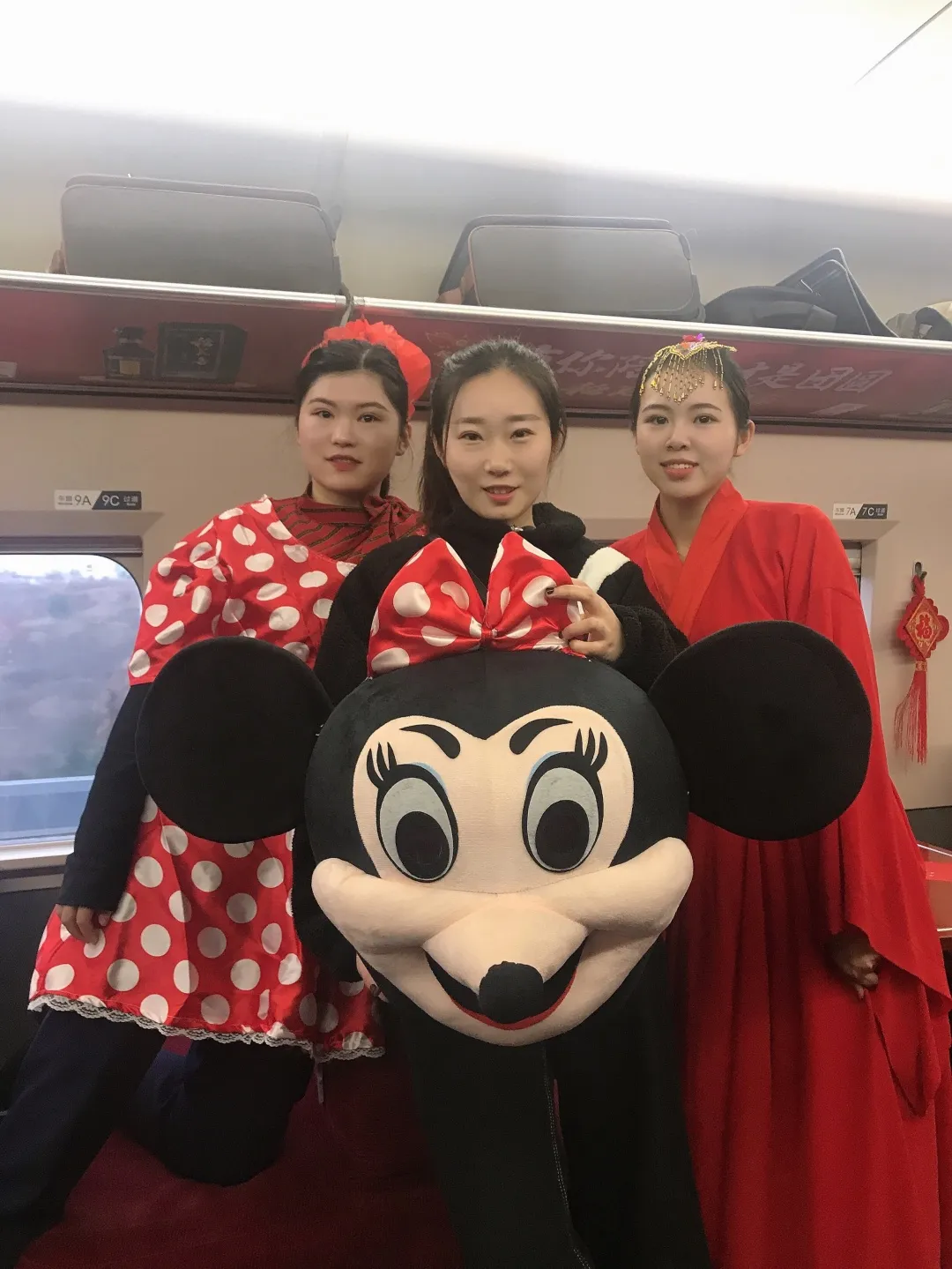这是G1590次列车上,车班举办的2020年小年列车春晚,在装扮好车厢等待旅客上车的间隙,演员们开心地拉着我一起拍照。那天活动现场气氛很热烈,我好想念车厢里的旅客们。快了,我们就要胜利了,就快相见了。