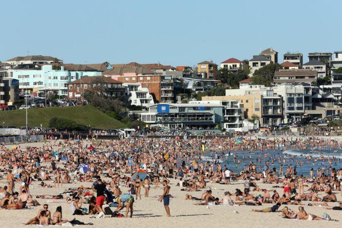 3月20日,数千人聚集悉尼邦迪海滩。图源:路透社