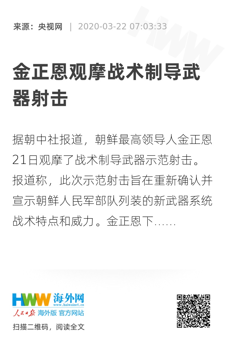 据朝中社报道,朝鲜最高领导人金正恩21日观摩了战术制导武器示范射击。