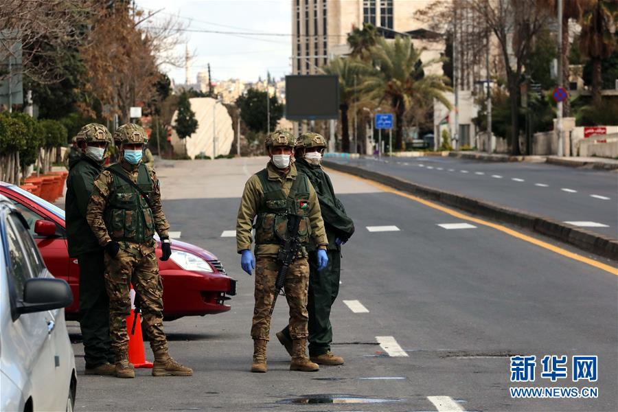3月21日,在约旦首都安曼,军人在街道上执勤。 当天是约旦强制民众居家隔离第一天。约旦政府20日宣布,从21日起把居家隔离升级为强制措施,以应对新冠肺炎疫情。截至20日,约旦累计新冠肺炎确诊病例69例,治愈1例。 新华社发(穆罕默德·阿布·古什 摄)