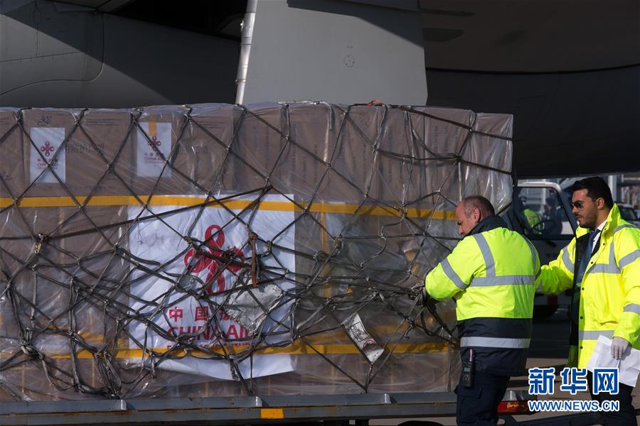 3月21日,在希腊雅典国际机场,工作人员从国航飞机上卸载中国援助希腊的医疗物资。 当日,一批中国政府援助希腊用于抗击新冠肺炎疫情的物资空运抵达雅典国际机场。同机运抵的还有由中国企业和社会各界向希腊捐赠的物资。 新华社发(马里奥斯·罗洛斯 摄)