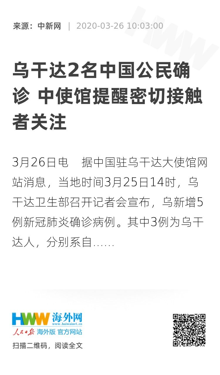 鉴于上述,中国驻乌干达使馆再次提醒在乌侨胞密切关注乌疫情动向,提高安全防范意识,做好自身防护工作。