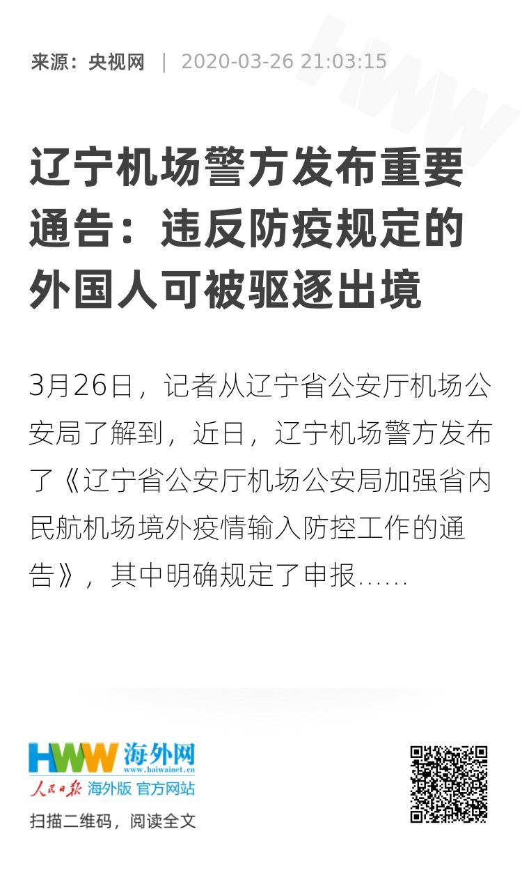 3月26日,记者从辽宁省公安厅机场公安局了解到,近日,辽宁机场警方发布了《辽宁省公安厅机场公安局加强省内民航机场境外疫情输入防控工作的通告》,其中明确规定了申报程序以及故意隐瞒将会受到怎样的处罚,并公布了举报电话。