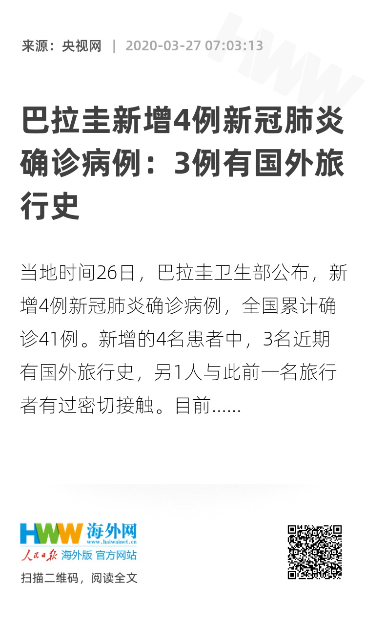 31752660,.巴拉圭新增4例新冠肺炎确诊病例:3例有国外旅行史,.2020-03-27 07:10:13,.204442,.张婧妍