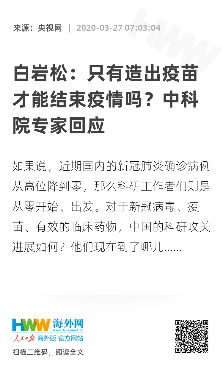 如果说,近期国内的新冠肺炎确诊病例从高位降到零,那么科研工作者们则是从零开始、出发。对于新冠病毒、疫苗、有效的临床药物,中国的科研攻关进展如何?他们现在到了哪儿?3月26日的《新闻1+1》,白岩松连线中国科学院副秘书长、中国科学院院士周琪,针对大家关注的问题进行了解答。
