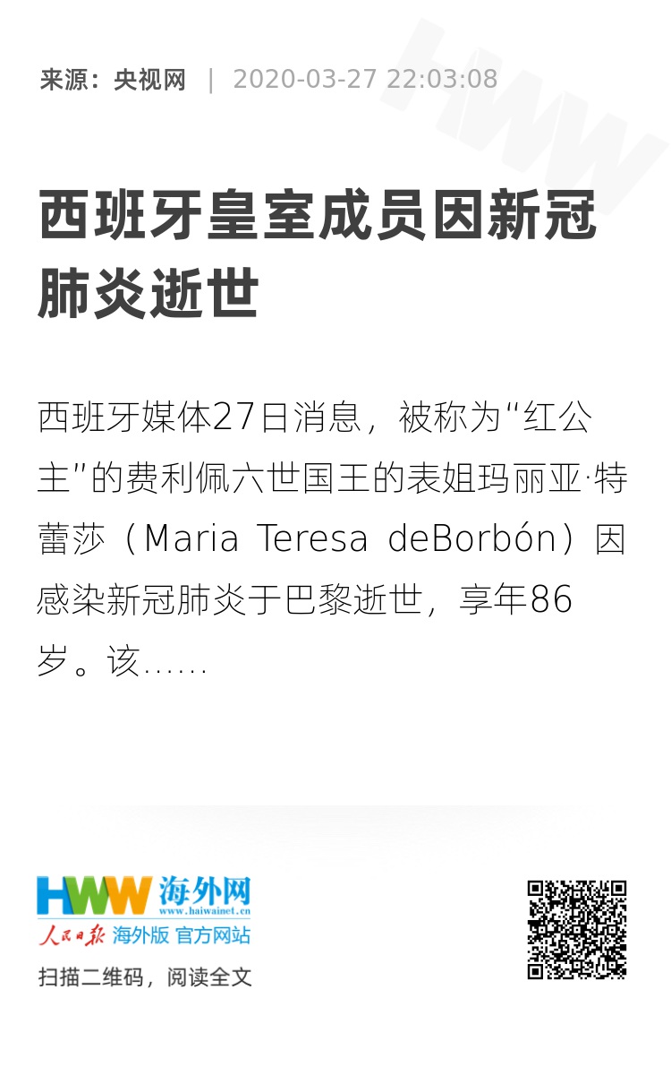 该消息是由她的兄弟宣布的,他在社交媒体上发表声明称:“非常遗憾”,并解释称她的葬礼将于周五在马德里举行。(总台记者 魏帆)