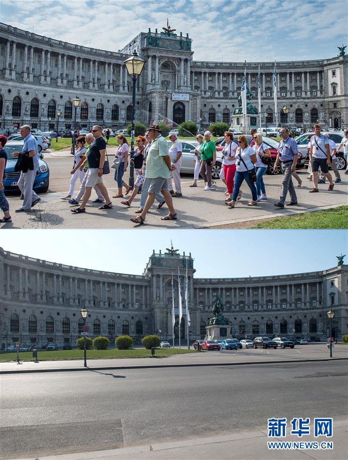 美国约翰斯·霍普金斯大学4月2日发布的最新统计数据显示,全球新冠肺炎确诊病例累计超过100万例。新冠疫情是21世纪全人类面临的一次最严峻挑战,为应对快速蔓延扩散的疫情,多国采取宵禁、封城等防控措施。 拼版照片显示:(上)2019年7月19日,游人从奥地利维也纳霍夫堡皇宫前走过。(下)2020年3月31日,奥地利维也纳霍夫堡皇宫外空无一人。 新华社记者 郭晨 摄