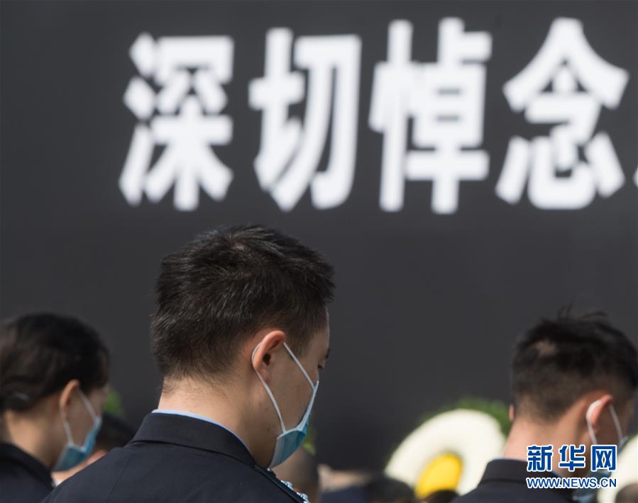 4月4日,在武汉汉口江滩一元广场,人们在哀悼活动中默哀。 当日,武汉市举行哀悼活动,表达对抗击新冠肺炎疫情斗争牺牲烈士和逝世同胞的深切哀悼。 新华社记者 肖艺九 摄