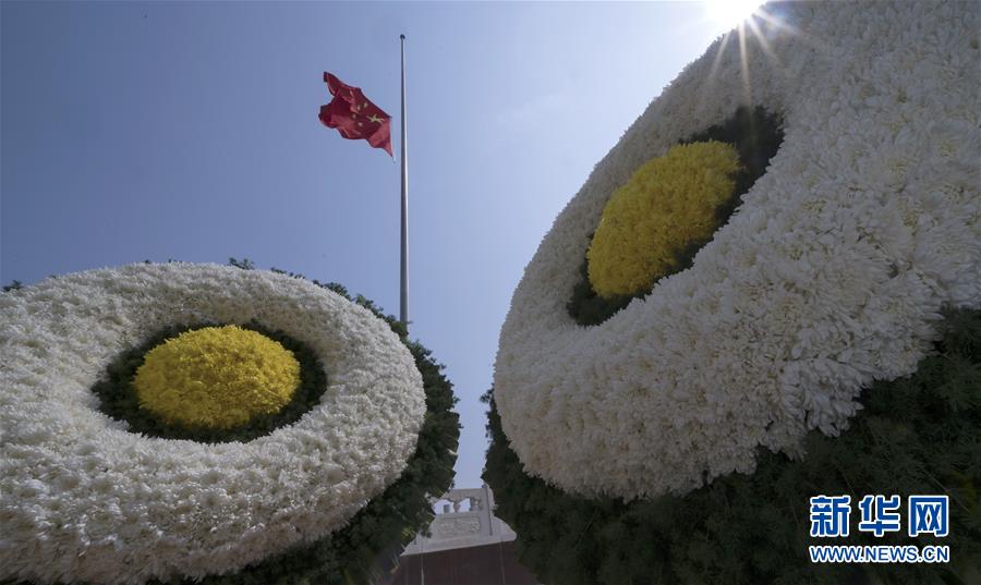 4月4日,武汉汉口江滩一元广场下半旗志哀。 当日,武汉市举行哀悼活动,表达对抗击新冠肺炎疫情斗争牺牲烈士和逝世同胞的深切哀悼。 新华社记者 费茂华 摄