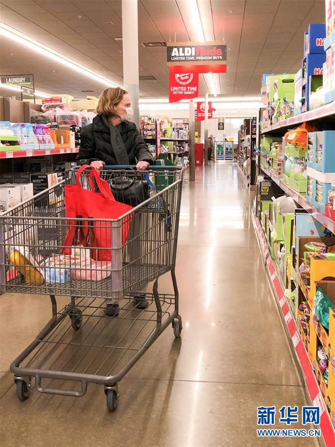 4月3日,市民在美国达拉斯北郊的一个超市内购物。 美国总统特朗普3日说,美国疾病控制和预防中心已建议民众用“布制面罩”对面部进行防护,以阻断新冠病毒的传播。 新华社发(田丹摄)
