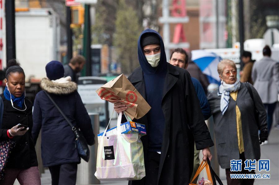 4月3日,行人走在美国纽约布鲁克林街头。 美国总统特朗普3日说,美国疾病控制和预防中心已建议民众用“布制面罩”对面部进行防护,以阻断新冠病毒的传播。 新华社发(郭克摄)