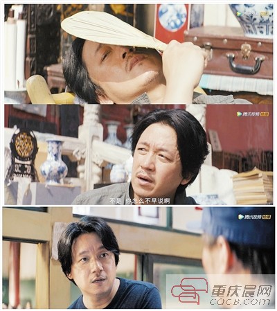 在这点上,潘粤明可以说处理得相当到位。一开篇的练摊,看似躺在凉椅上,蒲扇遮脸只顾打盹,但王胖子(姜超饰)稍一撺掇,他就连珠炮一样把自己对“黄土高坡来的、急着出货”的李春来分析得头头是道。等到被一只绣花鞋吸引,决定去陕西了,临行前他躺在床上心事重重的样子,似乎又回到了“颓”的心境里。“度”可以说掌控得分毫不差。