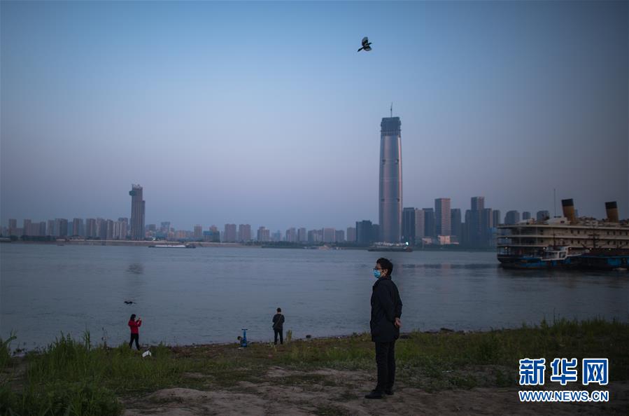 4月12日,市民在汉口江滩欣赏江景。 随着疫情防控形势好转,武汉人民的生活日常正在逐渐恢复。 新华社记者 肖艺九 摄