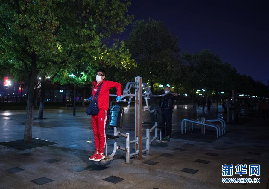 4月12日,市民在汉口江滩锻炼。 随着疫情防控形势好转,武汉人民的生活日常正在逐渐恢复。 新华社记者 肖艺九 摄