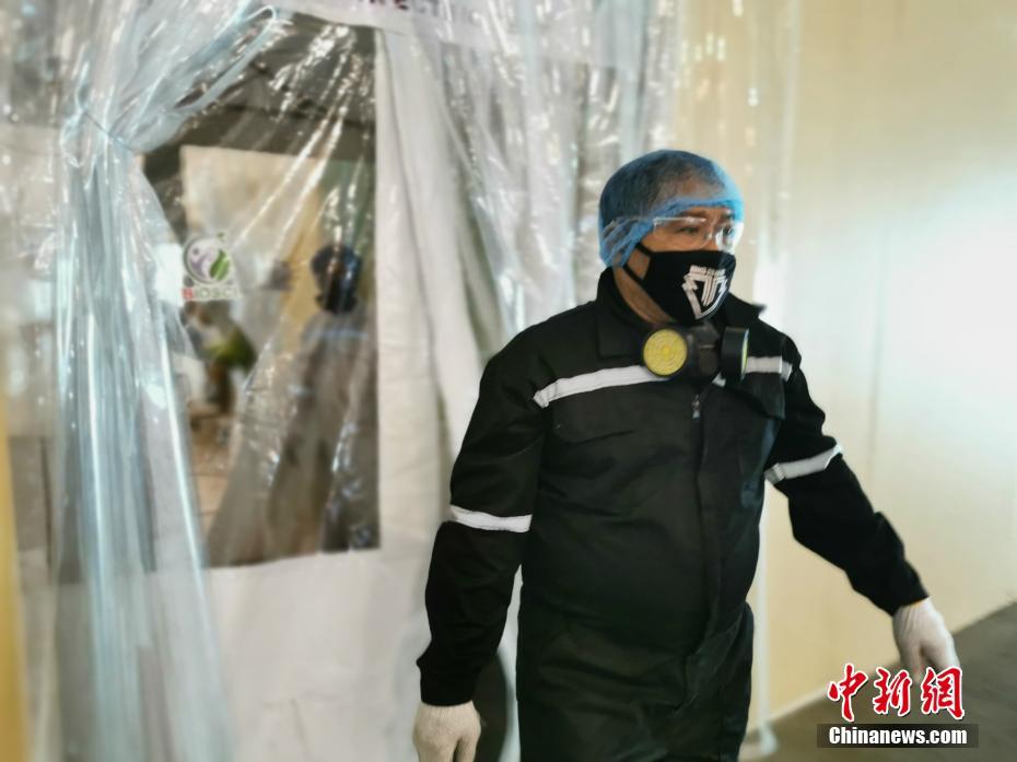 4月14日,经过仅仅六天的建设,位于菲律宾国际会议中心(PICC)、迄今全菲最大“方舱医院”呼之欲出。整个医院的最里,是一个两道隔离帘的隔离门。据介绍,第二道隔离帘内是抢救治疗区。 中新社记者 关向东 摄