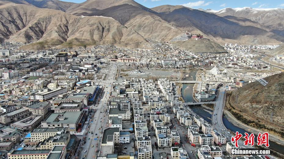 4月11日,航拍青海玉树新貌。中新社记者 胡贵龙 摄