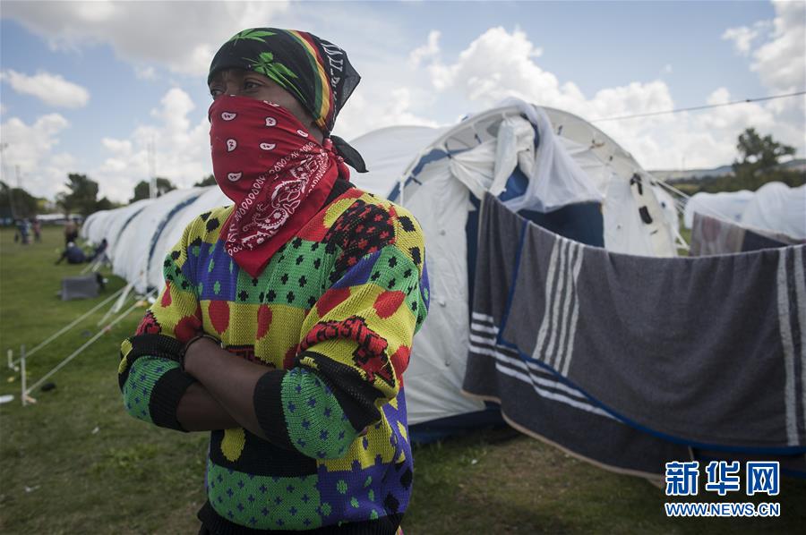 4月15日,在南非比勒陀利亚,一名无家可归者站在临时搭建的帐篷外。 为更好地控制疫情,南非政府为无家可归者搭建了临时的“家”,并提供食物、饮用水等基本生活物资,直到封城结束。 新华社发(希拉兹·穆罕默德 摄)