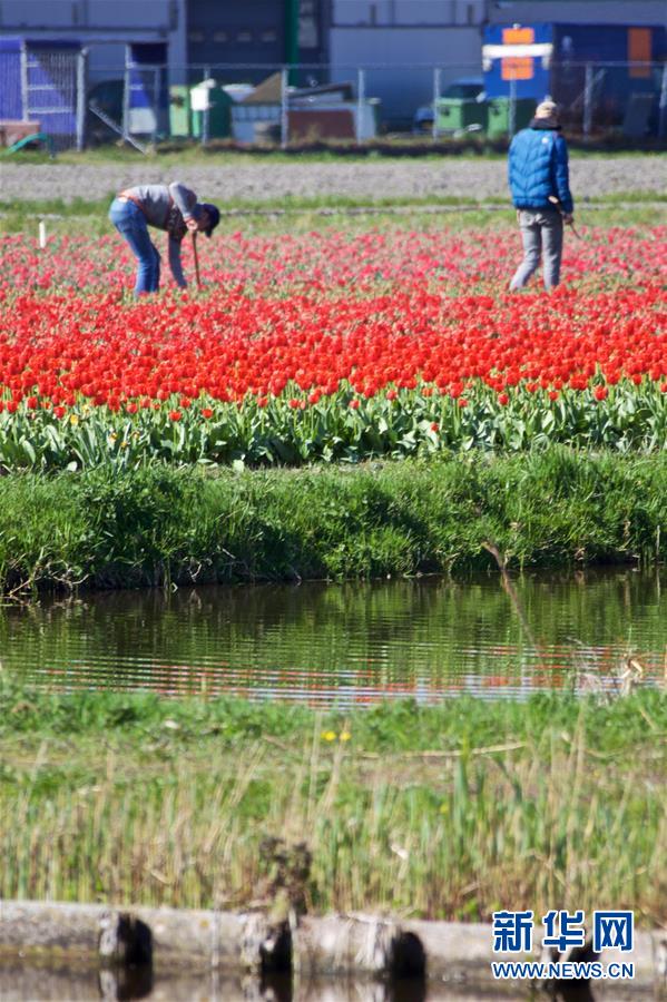 近日,荷兰福赫伦藏的郁金香花田进入收获期。在新冠疫情蔓延的背景下,为了避免大量游客前来聚集观看,当地准备提前收割。 新华社发(西尔维娅·莱德雷尔摄)