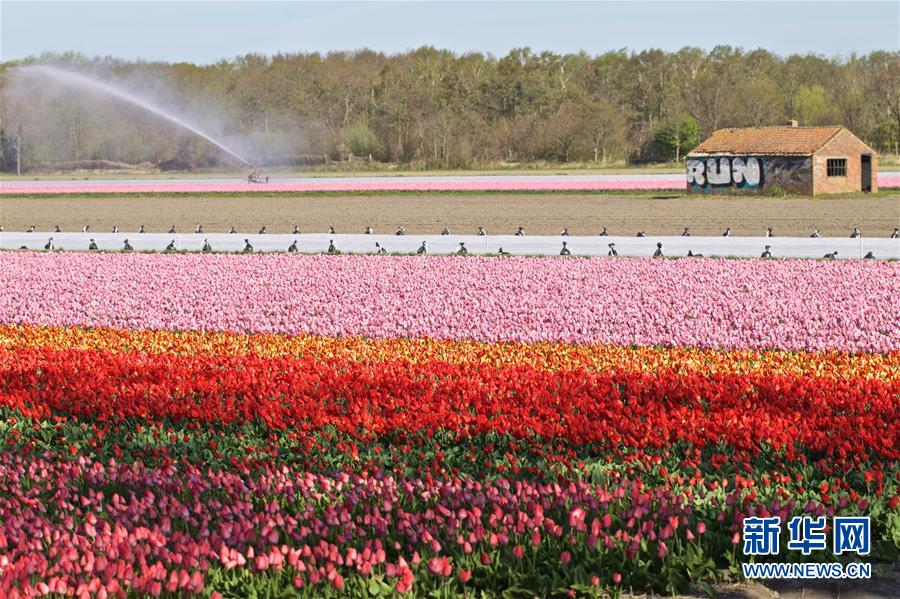 近日,荷兰福赫伦藏的郁金香花田进入收获期。在新冠疫情蔓延的背景下,为了避免大量游客前来聚集观看,当地准备提前收割。 新华社发(西尔维娅·莱德雷尔摄)
