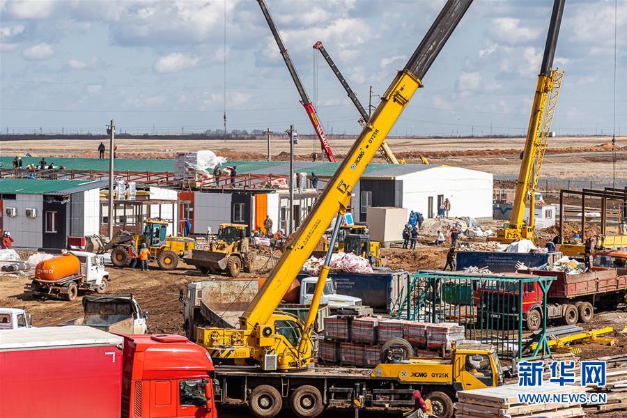 这是4月15日在哈萨克斯坦首都努尔苏丹拍摄的正在建设中的努尔苏丹应急传染病医院。 哈萨克斯坦建筑商BI集团15日发布消息称,用于收治新冠肺炎患者的努尔苏丹市应急传染病医院正在加紧施工。该医院为全预制构造,建成后拥有200张床位,现阶段正在进行通讯线缆、下水道系统和水管安装工作。工程由BI集团承建,共有500多名建筑工人参与施工。 新华社发 (哈萨克斯坦BI集团供图)
