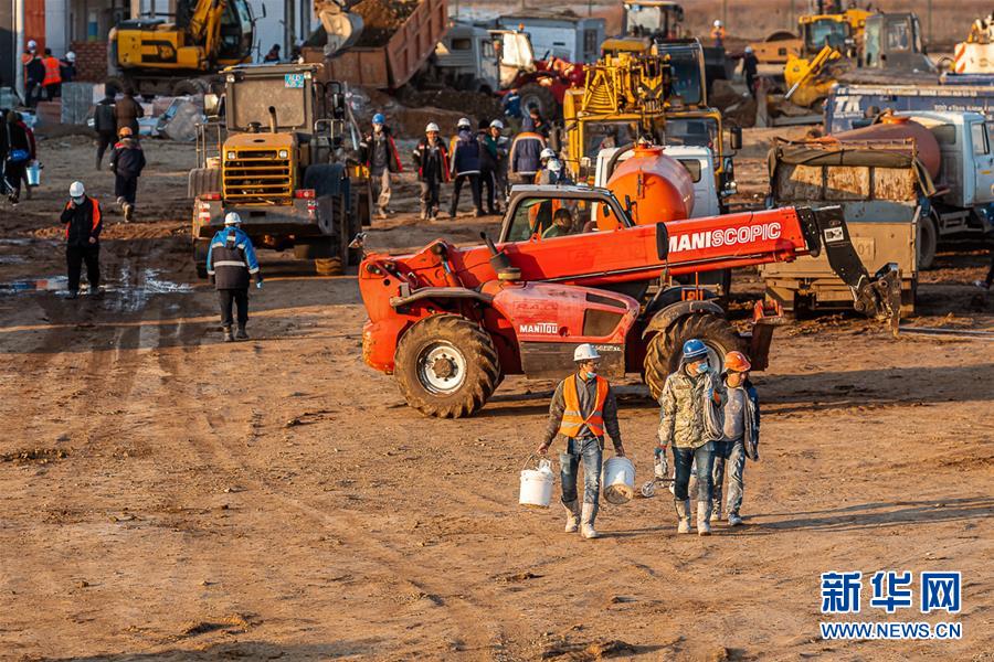 4月15日,在哈萨克斯坦首都努尔苏丹应急传染病医院建设工地,工人们在加紧施工。 哈萨克斯坦建筑商BI集团15日发布消息称,用于收治新冠肺炎患者的努尔苏丹市应急传染病医院正在加紧施工。该医院为全预制构造,建成后拥有200张床位,现阶段正在进行通讯线缆、下水道系统和水管安装工作。工程由BI集团承建,共有500多名建筑工人参与施工。 新华社发 (哈萨克斯坦BI集团供图)