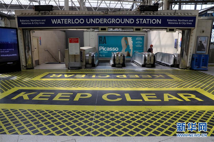 这是4月16日在英国伦敦拍摄的空荡荡的滑铁卢火车站。 当日,英国政府宣布封禁措施将延长至少三周。 新华社发(蒂姆·爱尔兰摄)